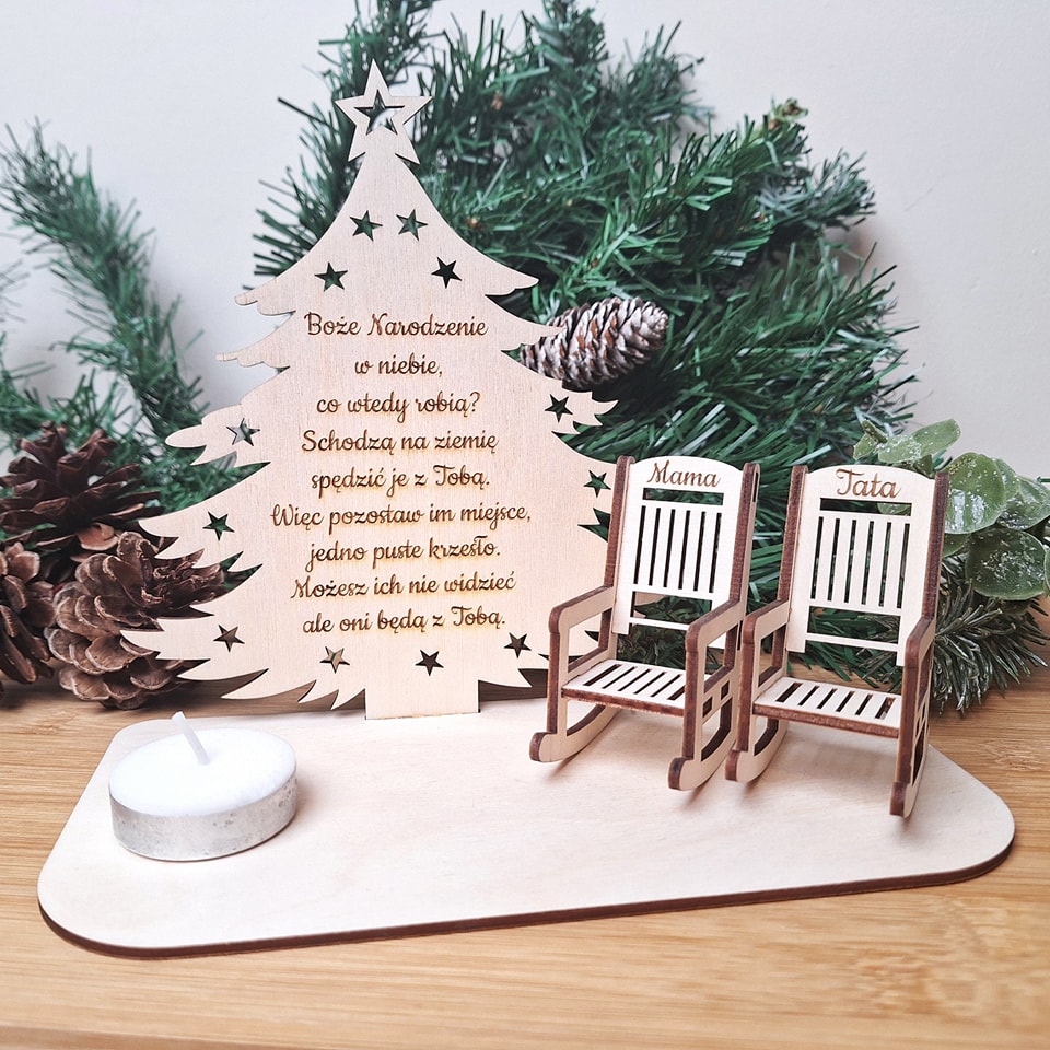 CHOINKA Z KRZESŁAMI – UPAMIĘTNIAJĄCA ZMARŁE OSOBY – BOŻE NARODZENIE W NIEBIE – PO POLSKU – WZÓR 2