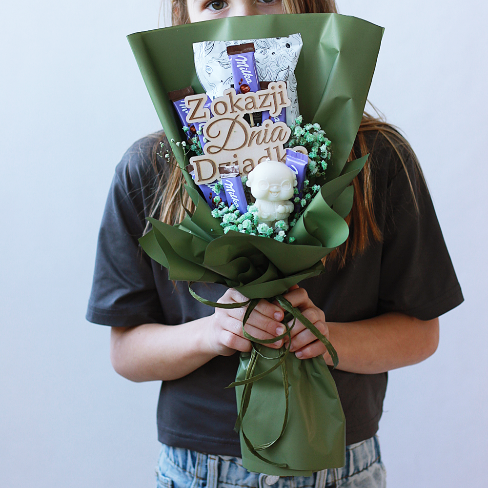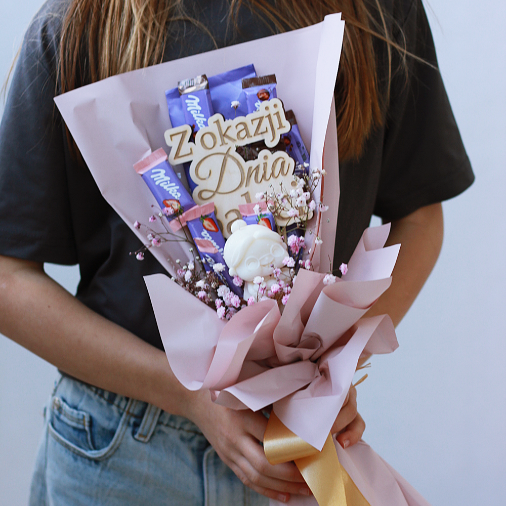 Bukiet słodkości/ bukiet kawa, herbata, świeczka sojowa – wyjątkowy prezent Dzień Babci i Dziadka.