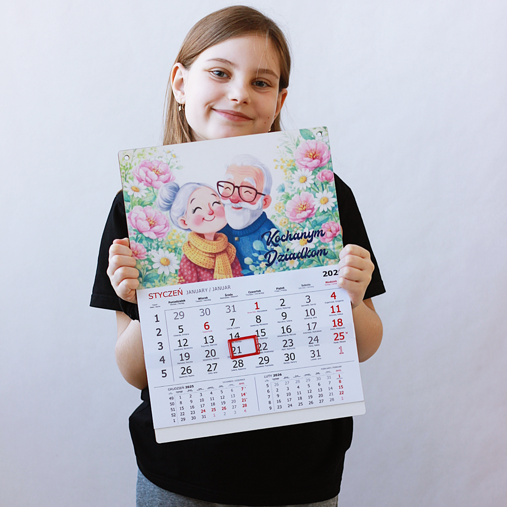 Kalendarz/ kolorowy nadruk/ babcia, dziadek/ kalendarz z własnym tekstem – wyjątkowy prezent Dzień Babci i Dziadka.
