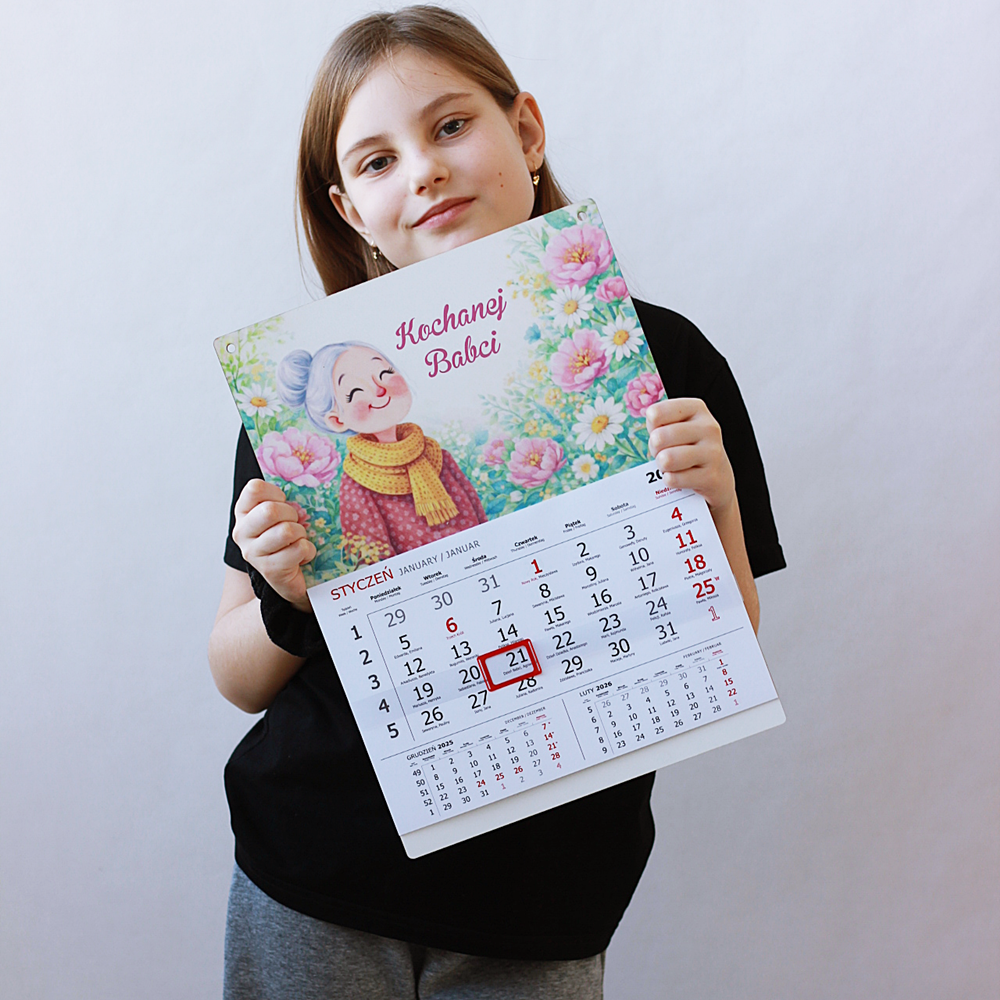 Kalendarz/ kolorowy nadruk/ babcia, dziadek/ kalendarz z własnym tekstem – wyjątkowy prezent Dzień Babci i Dziadka.