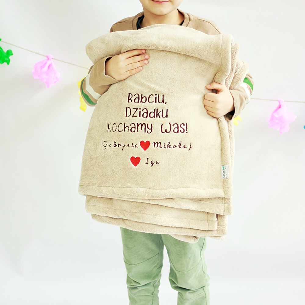 Koc na Dzień Babci i Dziadka to wyjątkowy prezent, który zapewni ciepło i komfort w każdej chwili. Wykonany z wysokiej jakości dzianiny, ten dwustronny koc jest miękki, ciepły i niezwykle przyjemny w dotyku. Doskonały na chłodne dni, sprawdzi się doskonale jako prezent na Dzień Babci i Dziadka.