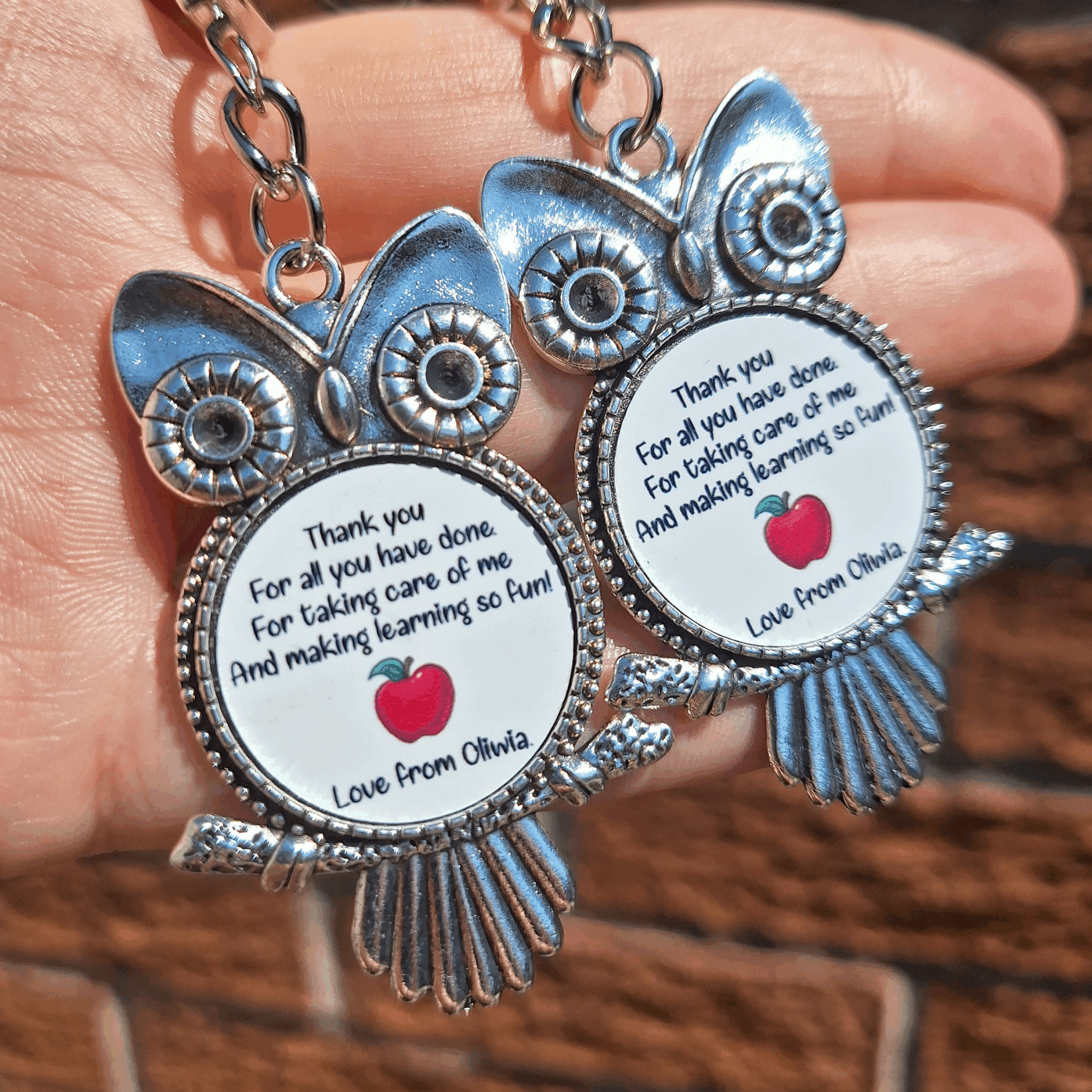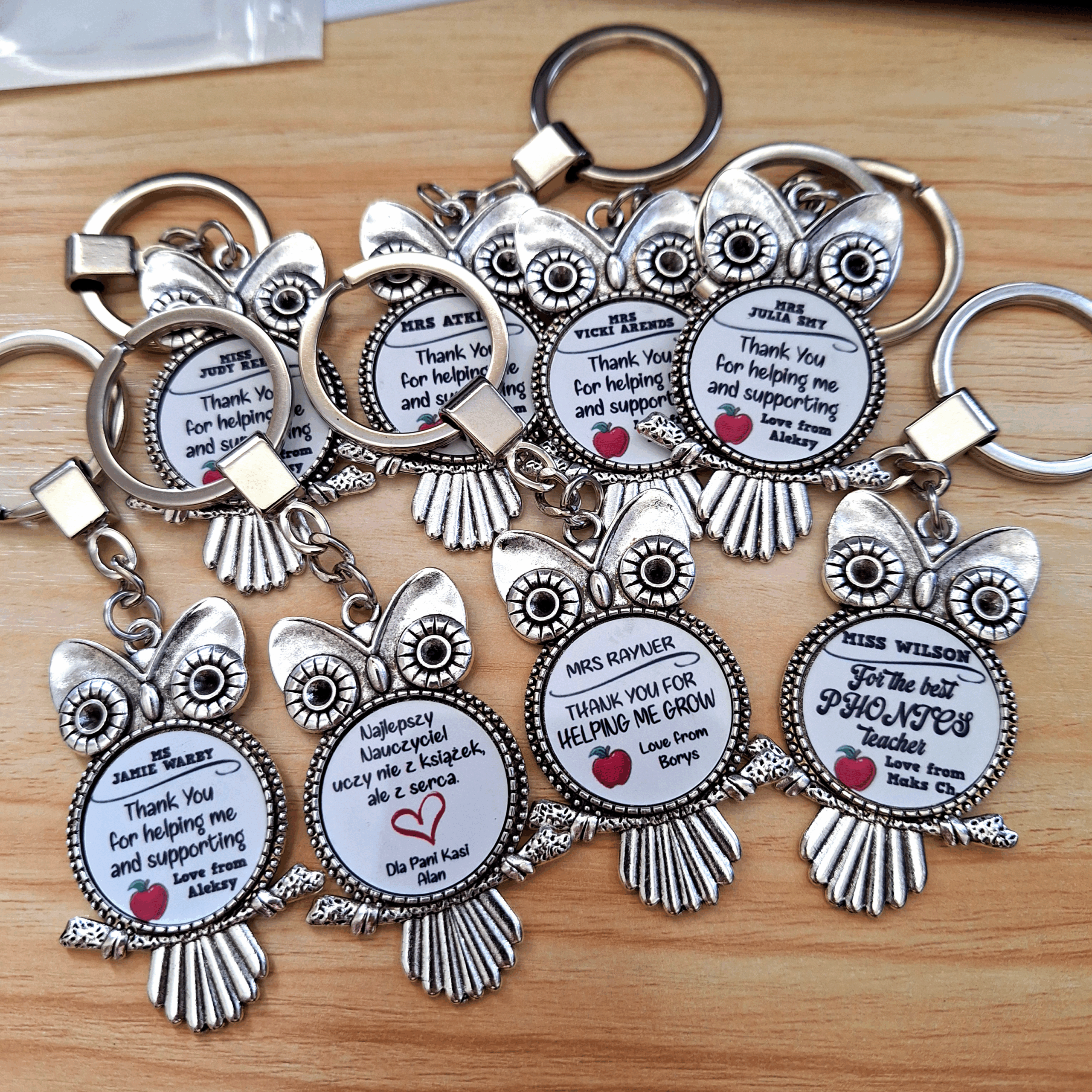 METALOWE BRELOCZKI DLA NAUCZYCIELI – BRELOK DLA NAUCZYCIELA – SOWA, SÓWKA – THE BEST TEACHER EVER, THANK YOU FOR HELPING ME GROW – WYBÓR NAPISU – 1 SZT