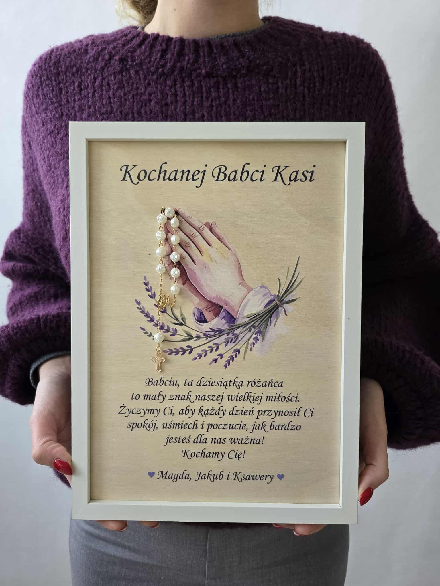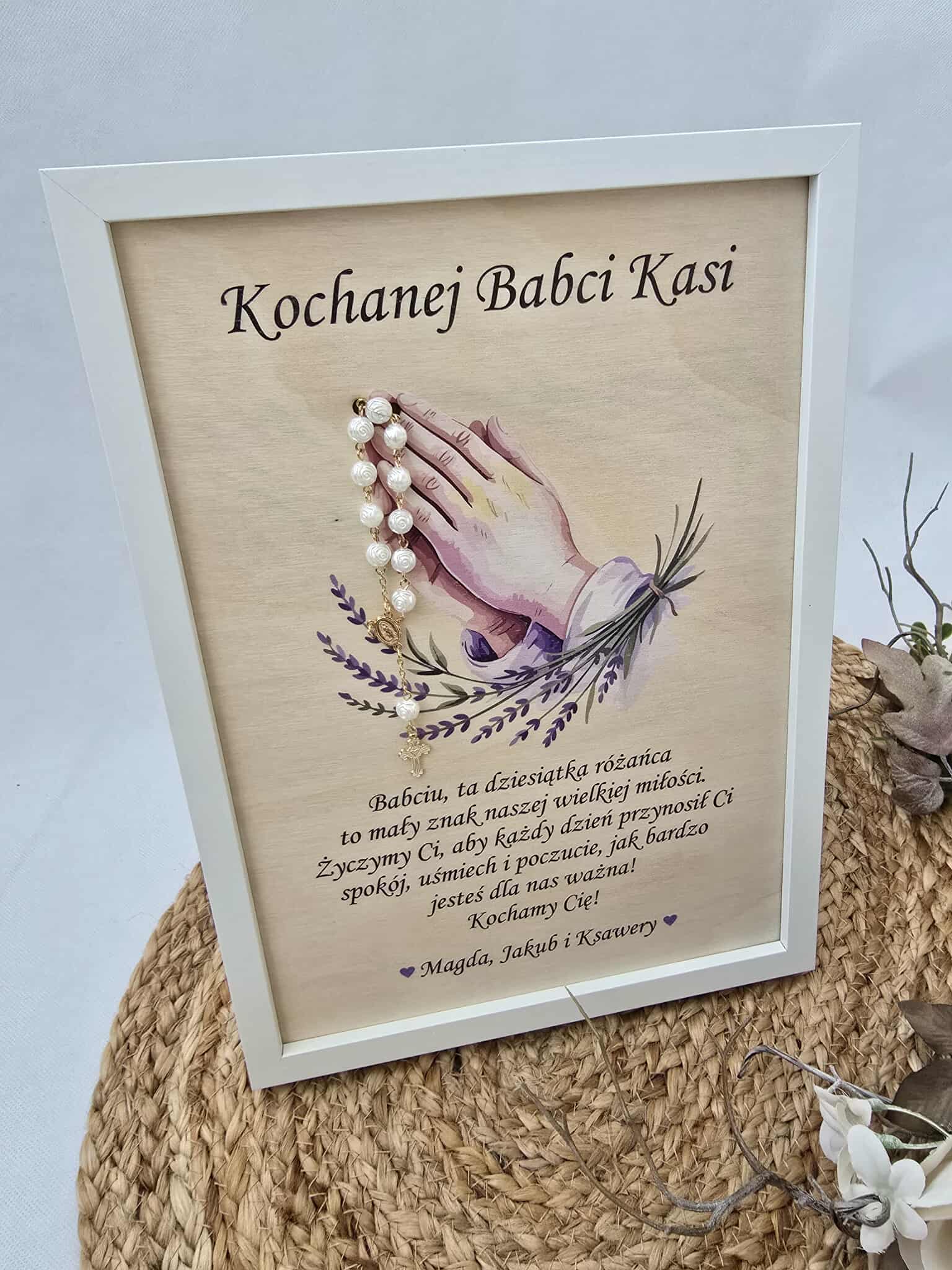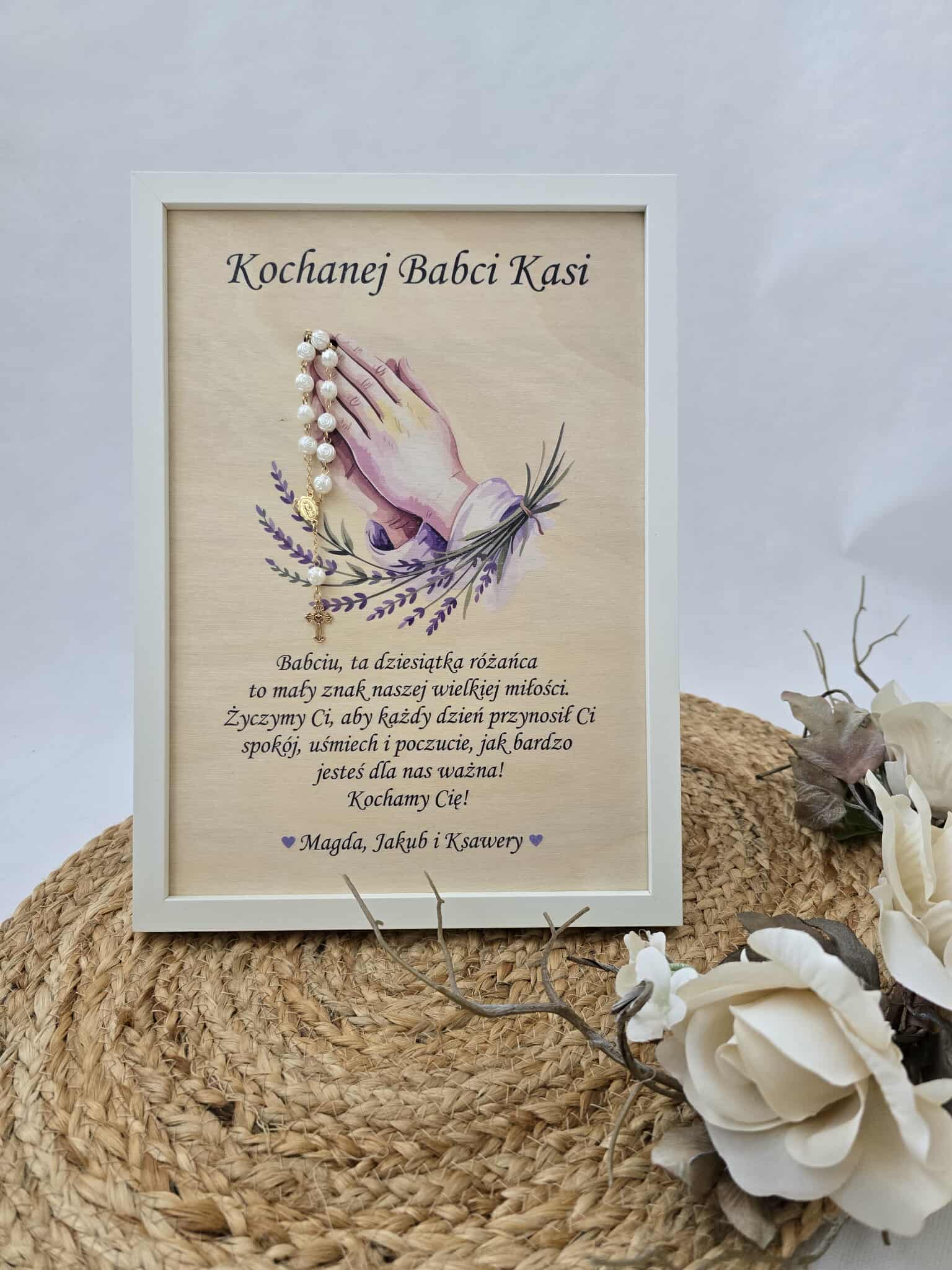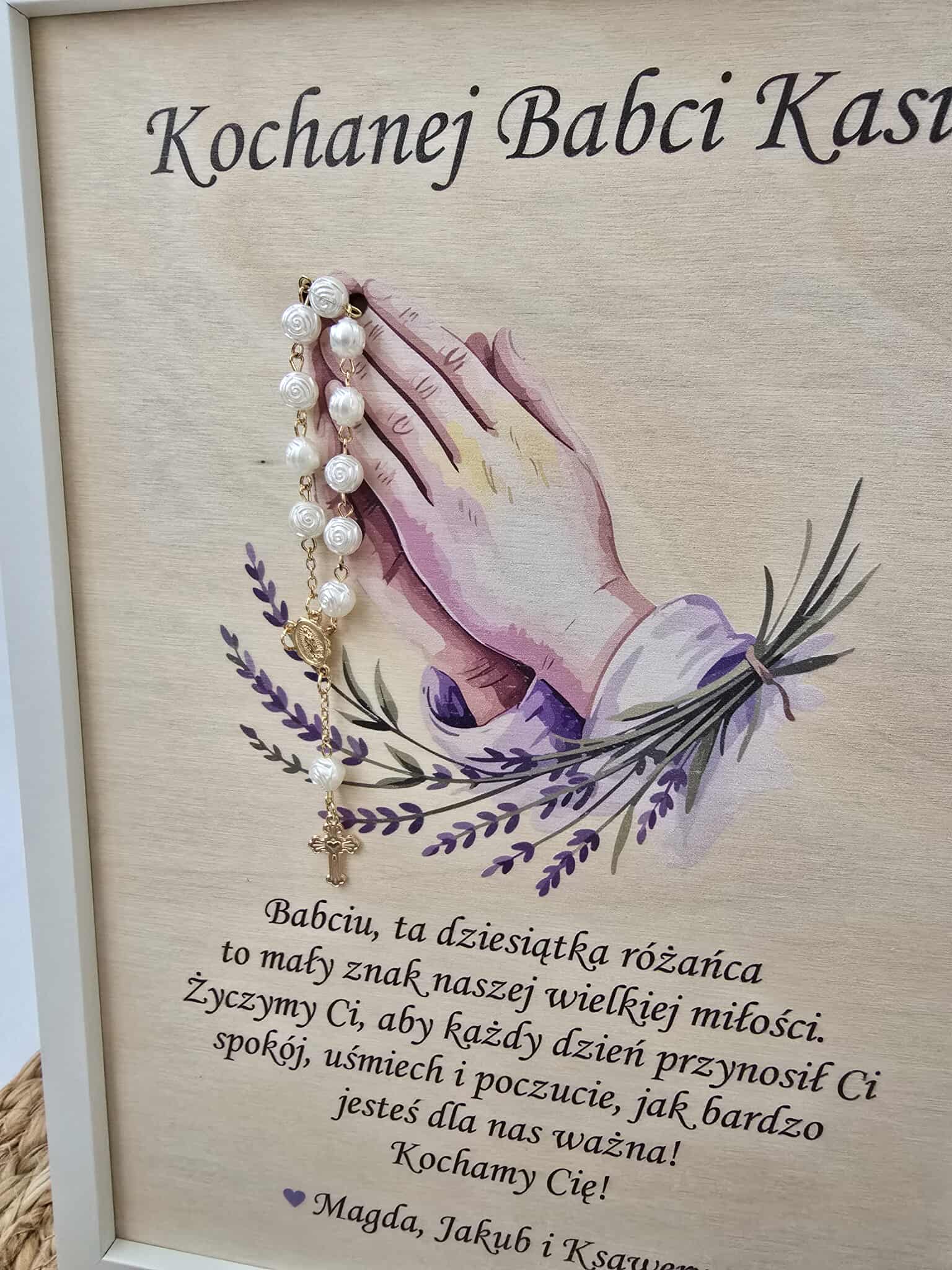 Ramka/ obraz z różańcem/ personalizacja – wyjątkowy prezent Dzień Babci i Dziadka.