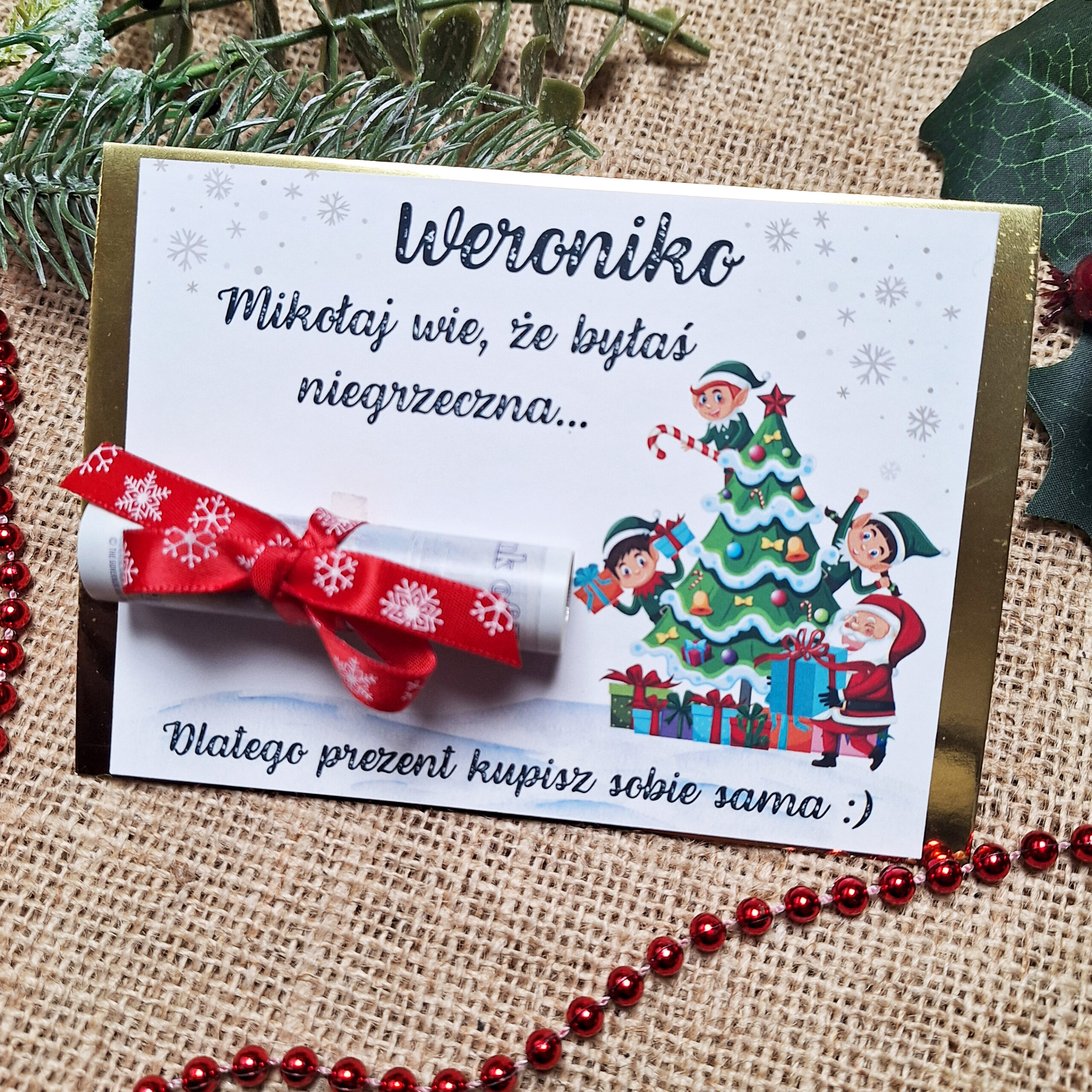 ŚWIĄTECZNY BON PODARUNKOWY – DLA GRZECZNYCH I NIEGRZECZNYCH – WYBÓR – WZÓR 2 – CHOINKA, MIKOŁAJ I ELFY