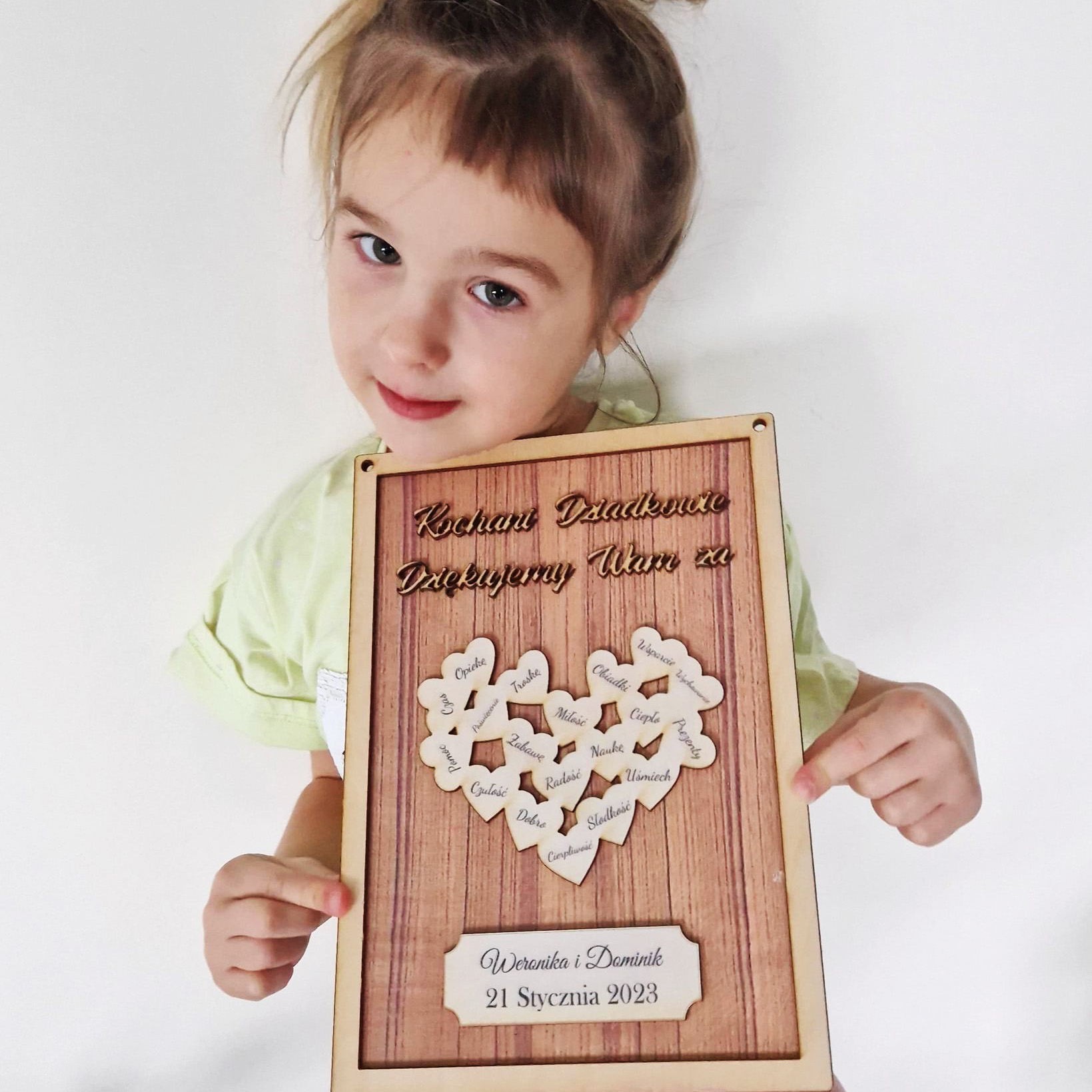 Tabliczka – dziękujemy za … z białymi serduszkami.